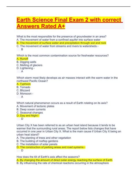 Read Online Earth Science Final Exam Semester 2 Answers Kindle Editon